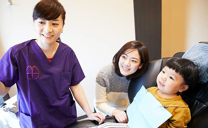 当院では、親御さまだけでなく、お子さまにも治療の説明をさせていただきます。もちろんわかりやすくイメージできるようなものを心がけます。こうすることで、なぜ歯の治療が必要なのか、治療することでどうなるのかなどを感じ取ることができ、歯磨きの意識なども高まります。